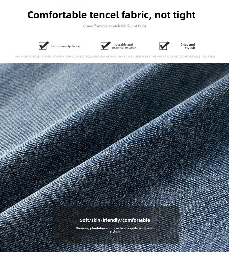 • Tencel Lyocell Material : Crafted from Tencel Lyocell, these jeans offer a soft, breathable, and eco-friendly wear for summer comfort.